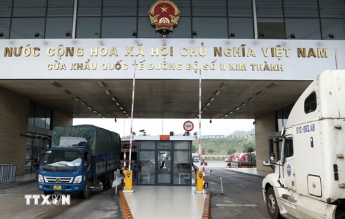老街省金城二号陆路国际口岸的进出口活动(图片来源:越通社) |