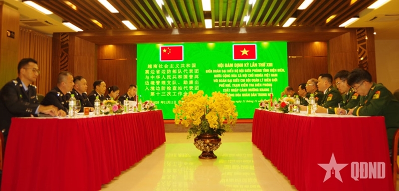 人民军队:11月11日,在奠边省,越南奠边省边防部队指挥部代表团与中国普洱边境管理支队、勐康出入境边防检查站代表团举行2025年第十三次工作会谈。