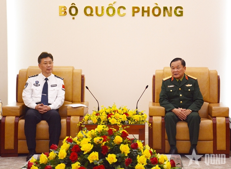 人民军队:12月10日下午,在国防部总部,越共中央委员、中央军委常委、国防部副部长黄春战上将会见中国国家移民管理局副局长刘海涛。