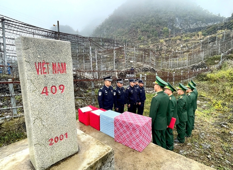 2月3日,在409号界碑区域,由龙鼓边防屯政治教导员阮春兴中校为团长的越南宣光省龙鼓边防屯与同文边防屯代表团,与中方云南天保出入境边防检查站马林分站代表团举行会晤。