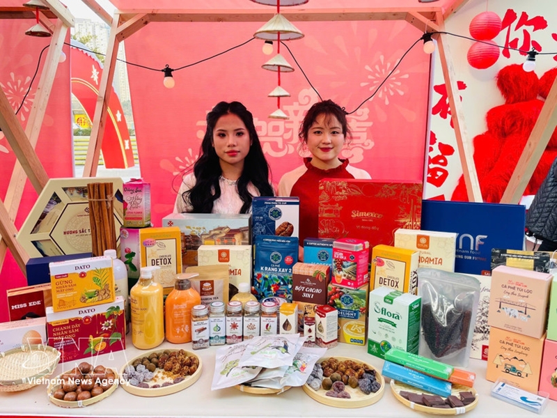 在迎接新春佳节到来之际,越南驻重庆总领事馆向参观者推介了越南特色美食,吸引众多观众驻足关注。