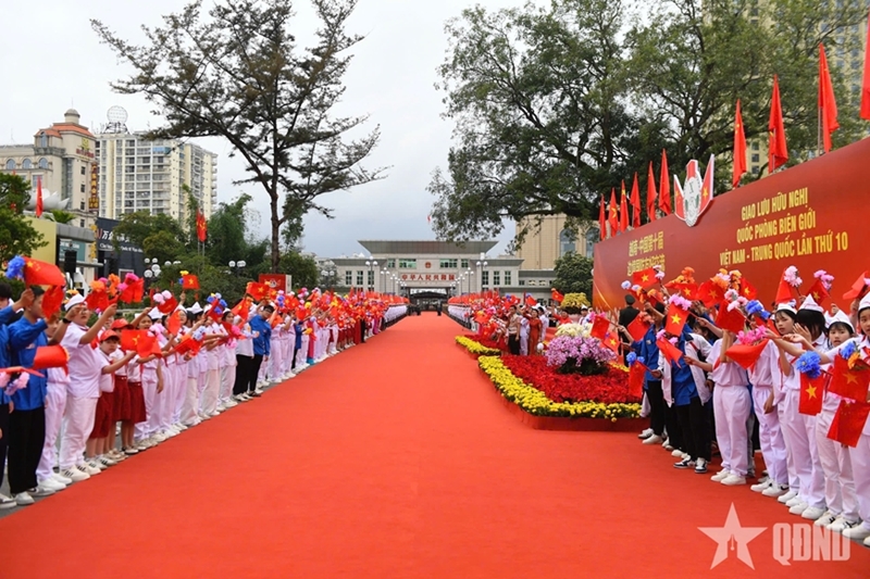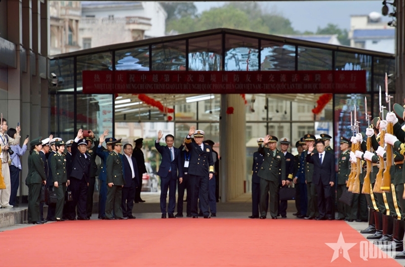 欢送仪式上,董军上将对越南军队和人民给予中国代表团的重视、周到接待表示高兴和感谢,并强调了越中边境国防友好交流活动在促进双边防务合作方面的重要作用和意义。