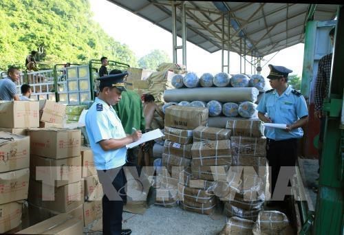 附图:海关人员检查进口货物(图片来源:越通社)