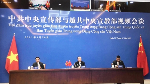 越共中央宣教部部长阮仲义与中共中央宣传部部长黄坤明举行视频会谈