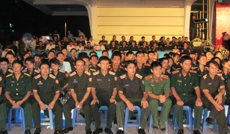 | 参加越老军队青年联欢晚会的陈国俊大学的学员 |