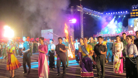 “青年晚会” 是联欢晚会中的专题,舞台上、舞台下都一起活跃起来,在越老国旗飘扬的下面,1000名越南-老挝青年一起点亮了两党、两军和两个人民始终如一的友谊火把,一起跳舞、唱歌。
