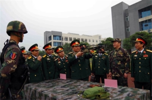 | 第二军区代表团参观成都军区第13集团军特种作战旅的武器装备(图片来源:人民军队报) |