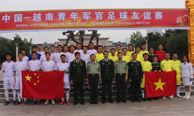 越南年轻军官足球队与中国成都军区司令部足球队合影留念