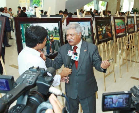 | 委内瑞拉驻越南大使豪尔赫·隆东·乌斯卡特吉在“越南与委内瑞拉永远是兄弟”图片展接受记者采访(图片来源:越通社) |