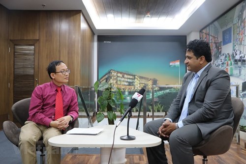JSIA杂志主编潘卡吉·杰哈教授接受记者的专访(图片来源:越通社) |