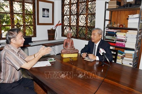 柬埔寨国家文献中心主任尤张接受越通社驻金边记者采访(图片来源:越通社) |
