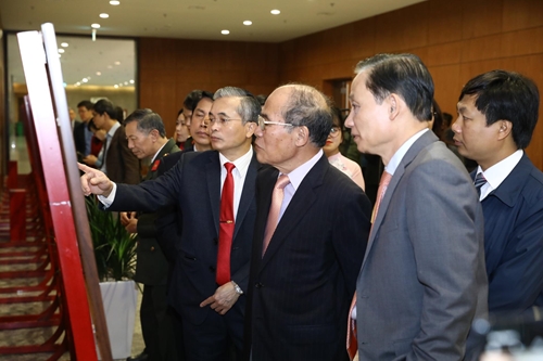 原国会主席阮生雄参观胡志明主席图片资料展(图片来源:人民军队报) |