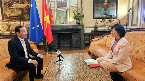 越南驻比利时兼驻卢森堡大公国大使、越南常驻驻欧盟代表团团长阮文草接受记者的采访(图片来源:越通社) |