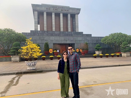 Anurag Kumar少校和他的妻子参观胡志明主席陵(图片来源:人民军队报) |
