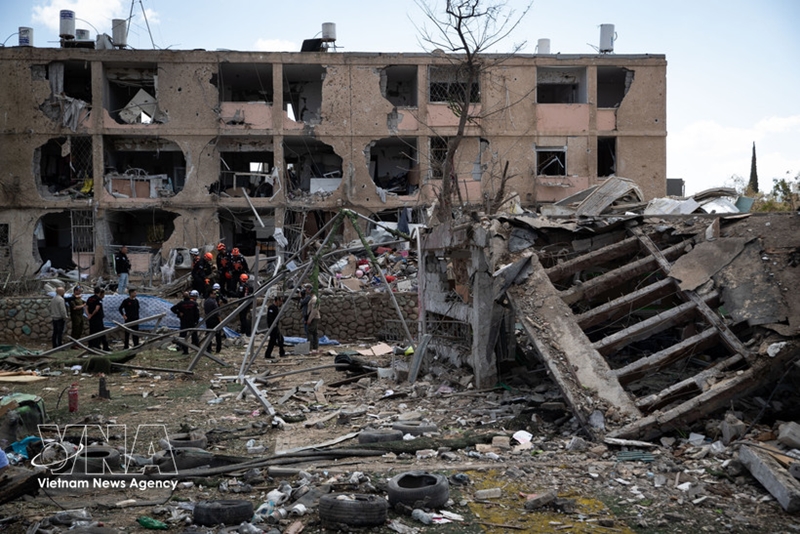 2026年3月22日,以色列迪莫纳一栋建筑遭导弹击中被毁(图片来源:越通社) |