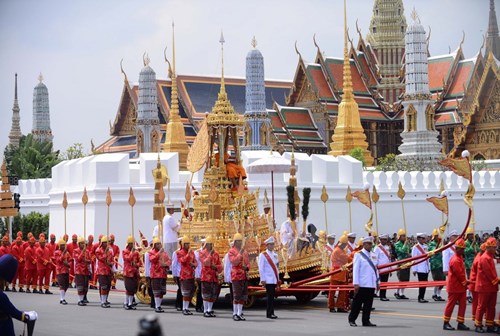 越南国家副主席邓氏玉盛和世界各国皇家及政府40名代表出席泰国先王普密蓬遗体火化仪式。
