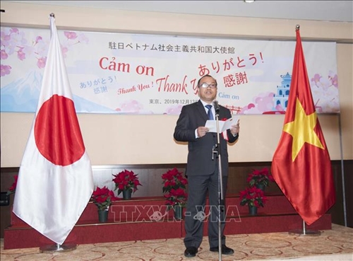 越南驻日本大使武宏南在活动上发表讲话时已回顾了2019年越日两国关系中的重要里程碑,其中包括越南政府总理阮春福今年6月访问日本并出席G20峰会。此访表明越南国际地位日益提升,同时进一步巩固越南与日本两国关系。他同时表示希望在日本德仁天皇时期双边关系将继续提高到新水平。