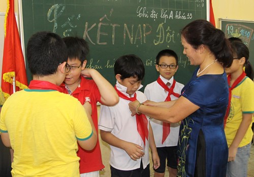 河内市实验小学学校的少年先锋队新队员入队仪式(图片来源:人民军队报)