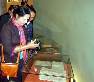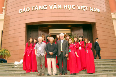 赴越南文学博物馆时,各位国际代表已分别参观了越南文学史展区、越南文学各作者、作品实物的展区以及世界文学交流室。各展区所陈列的著名作品和实物有助于国际友人深入了解越南文学,并是向国际友人推介越南文学的良机。