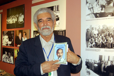 | Alex Pausides 诗人介绍他精心收集并翻译成西班牙语关于胡志明主席的作品 |