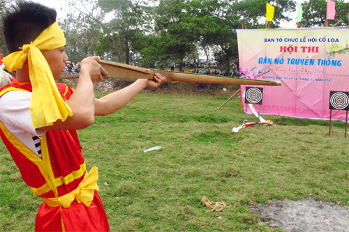 河内市东英县古螺乡古螺庙会中的弹弓比赛是越南民族尚武精神的载体之一(图片来源:人民军队报)