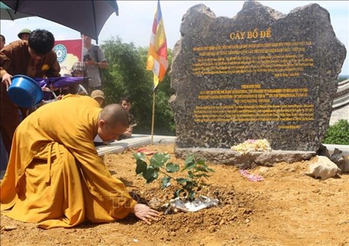 越南佛教协会7月22日在河南省金榜县巴稍市三祝寺举行由斯里兰卡议会主席赠送的菩提树迎接和种植仪式。