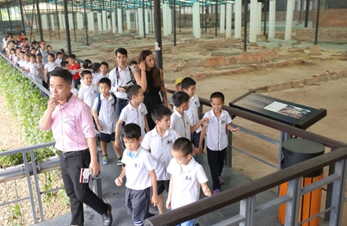 学生们参观世界文化遗产升龙皇城(图片来源:人民军队报) |