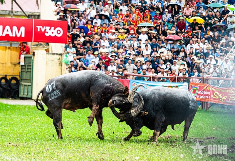2025年涂山斗牛节在一片欢腾热闹的气氛中举行,数万名当地群众和游客涌入海防市涂山中心体育场,共同见证传统斗牛节总决赛。经过一天激烈的角逐,15场精彩对决后,由丁廷富所养的6号“斗牛王”最终脱颖而出,勇夺2025年冠军,赢得奖金1亿越南盾。