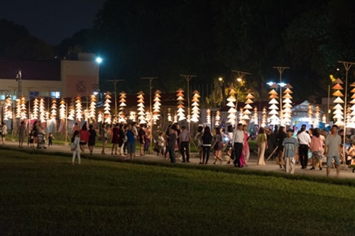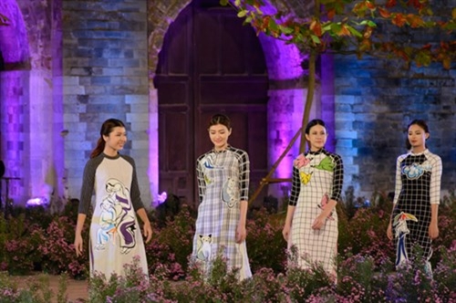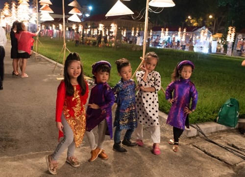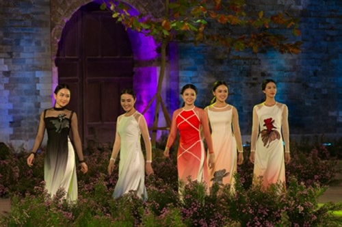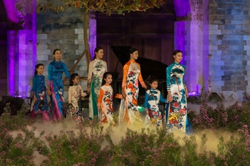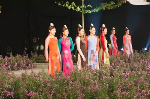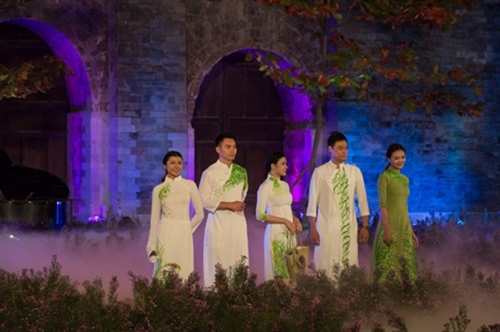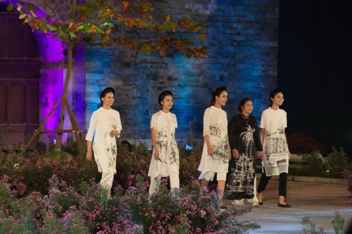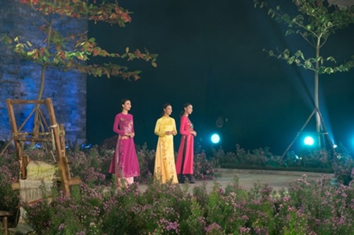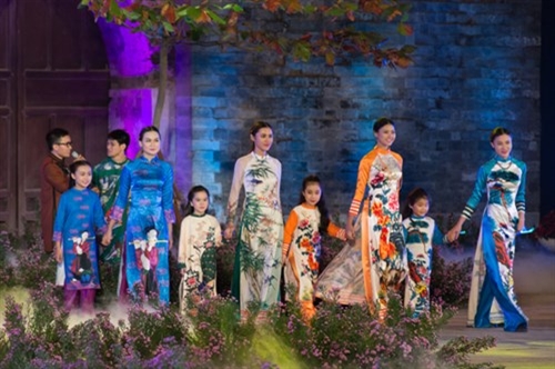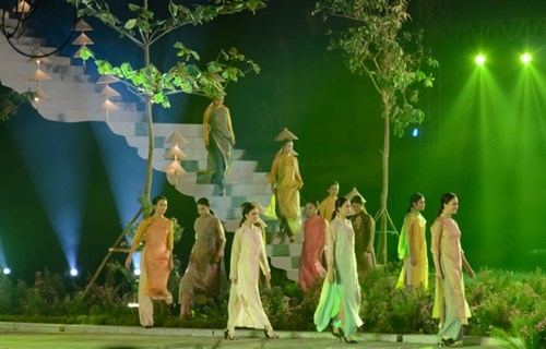 2016年河内奥黛节是爱戴艺人在一个玲珑多彩、印象深刻的空间中体现出自己的才艺;推崇越南传统时装至每。格调斗笠灯笼带给观众一个亲切的舞台空间。
