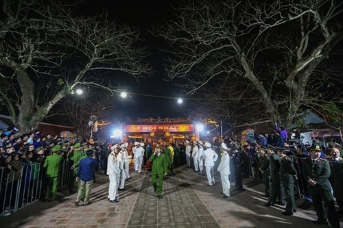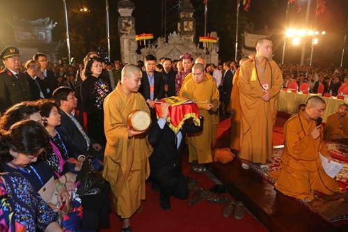 敬香仪式和迎印章仪式结束后,晚上22时15分在天长寺,开印仪式在庄严的气氛中按照传统仪式隆重举行。印章从供奉国公节制兴道大王陈国峻的故泽祠迎接到设有陈朝14位皇帝灵位的天长祠,超过100个人参加了仪式。