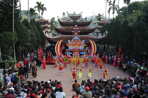 * 当天上午,数千名游客和当地居民踊跃参加朔庙庙会。敬香、敲锣打鼓开庙之后,朔山县人民委员会领导代表与人民一起回顾荣圣传说中的越南人民爱国主义及打败外侵等传统。