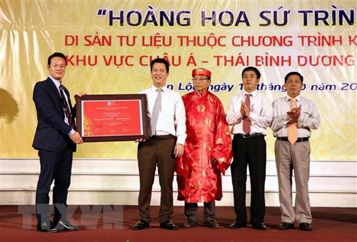 《皇华使程图》被列入联合国教科文组织世界记忆亚太地区名录的授证仪式(图片来源:越通社) |