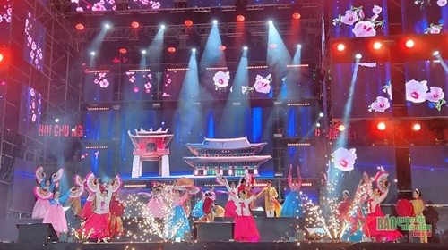韩国—越南文化旅游节期间,由越南和韩国著名歌手、音乐家表演的文艺表演节目吸引了众多首都市民和游客。