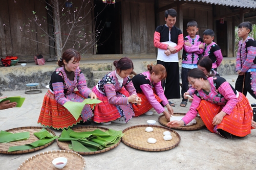 在山罗省木州县承黑(Chiềng Hắc)乡塔舒(Tà Số)村,蒙族同胞正在忙忙碌碌地迎接春节。在春节到来的快乐气氛中,蒙族同胞穿着传统服装、准备独特的礼物,玩耍充满蒙族文化特色的游戏。