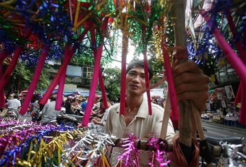 报答村村民制做的五角星灯在河内马行街上销售(图片来源:人民军队报)