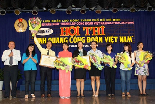 “光荣的越南工会联欢会”从2014年5月开展,吸引了近两万名公务员、劳动者参加。经过公平评分,六队已进入总决赛。竞赛的主要内容包括:测试、事件图片、知识问答、传统音乐知识问答和有关工会传统的答辩;了解胡志明市工会第十届大会决议、越南工会第十一届大会决议;以胡志明主席革命道德为榜样而学习行动;提高责任感、反对个人主义、言行一致等。