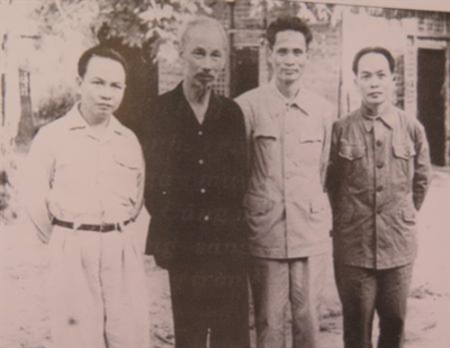 | 胡志明主席与范文同(右起二),武元甲和长征在1954年7月第六届中央会议后合影(资料图) |