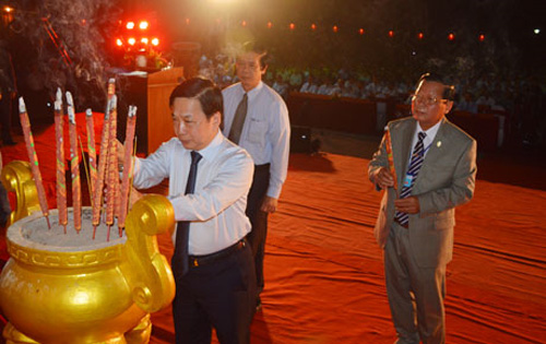 | 前江省领导人向沥涔-吹蔑之战大捷纪念碑敬香(图片来源:baoapbac.vn) |
