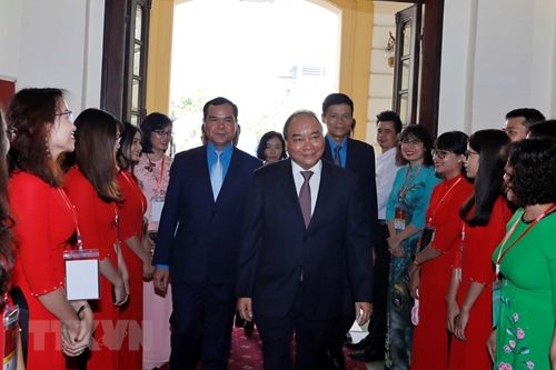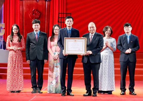 阮春福在纪念典礼上向《劳动报》授予一级劳动勋章,向《劳动报》总编辑阮玉显授予三级劳动勋章。