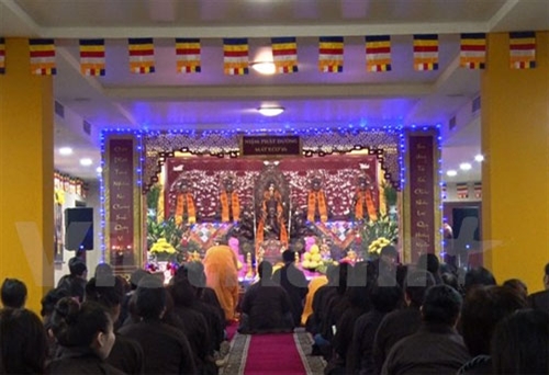 上元节消灾祈福大法会2月22日在俄罗斯首都莫斯科河内-莫斯科大酒店、商业、文化中心(INCENTRA)举行。越南驻俄罗斯大使阮青山同数百名旅居莫斯科越南人参加活动。