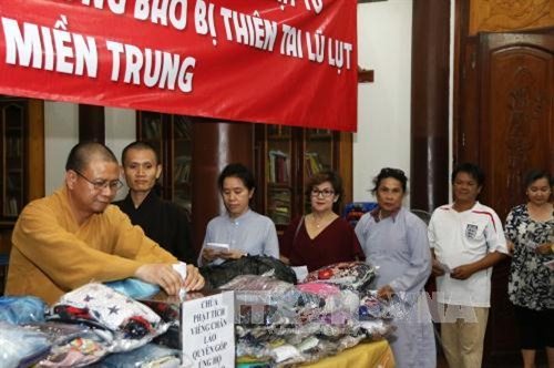 佛迹寺住持释明光表示,自10月20日起,佛迹寺已发起为越南中部洪灾灾民捐款活动。截止22日,除了大量衣物外,旅居老挝万象越南人佛子捐献的善款约达1万多美元。按计划,10月24日,佛迹寺救援队将离开万象前往越南河静省向灾民赠送慰问品。