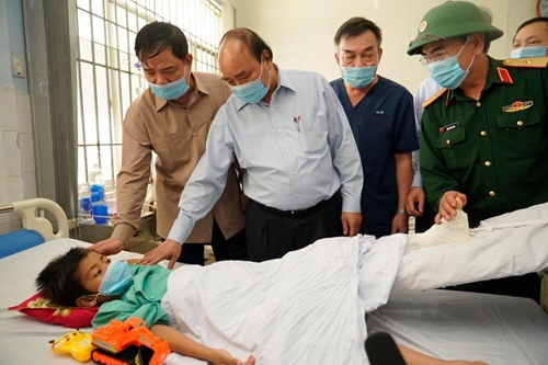 在广南省,阮春福总理前往广南省综合医院看望因第9号台风受伤的人员。他们当中有广南省南茶媚县茶棱乡泥石流事故的伤员。阮春福向受伤人员表示慰问,并建议各部门、地方关爱照顾伤员及其家属。