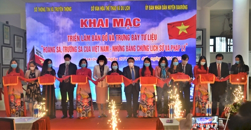 “黄沙、长沙归属越南—历史证据和法律依据”流动展览开幕式剪彩仪式(图片来源:baoquangtri.vn) |