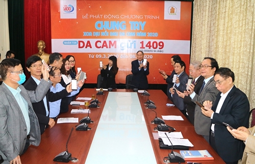 阮文赢上将和各位代表参加2020年“抚平橙剂受害者创伤”的发短信活动(图片来源:人民军队报) |