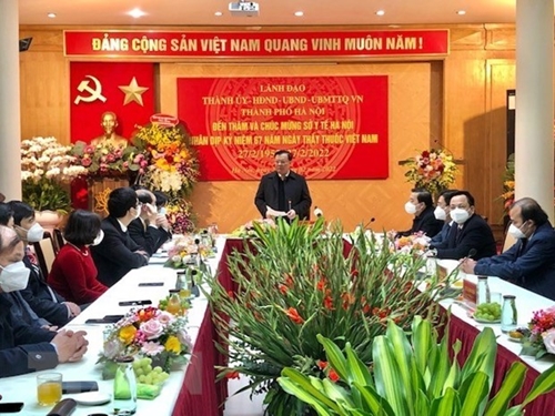 2月21日上午,越共中央政治局委员、河内市委书记丁进勇值此越南医师节67周年即将到来之际前往河内卫生局和圣保罗医院,向首都河内医疗卫生部门全体人员表示祝贺。