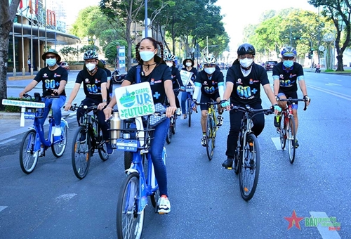 据越通社消息:3月13日,胡志明市团市委在青年文化宫举行骑自行车启动2022年“地球一小时”活动,吸引近500名青年自愿者参加。