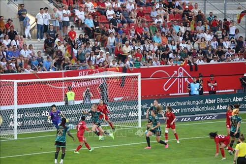 越南国家女子足球队与德国队进行精彩的角逐(图片来源:越通社)