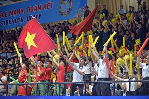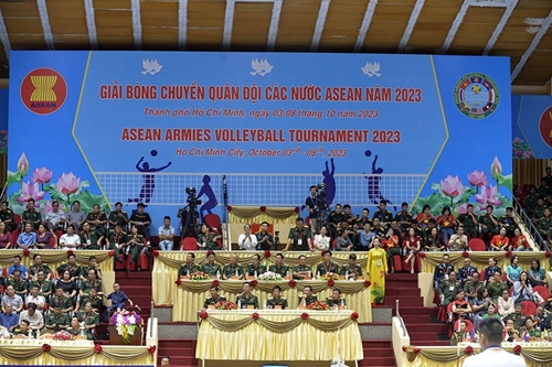 越南人民军男排队与泰国皇家军南男排队的决赛于10月8日晚在第七军区第二国防体育中心举行。越南人民军副总参谋长、2023年东盟各国军队男子排球比赛组委会主席阮文义上将,总参谋部军训局局长、比赛组委会副主任泰文明中将,越共中央委员、第七军区司令阮长胜中将,第七军区政委陈淮忠中将以及各机关、单位领导代表和国际嘉宾观看比赛。