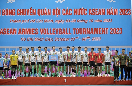 决赛结束后,组委会举行了2023年东盟各国军队男子排球比赛闭幕式和颁奖仪式。阮文义上将在致闭幕词时强调:“经过6天的热烈角逐,在各参赛队的努力和高度决心下,2023年东盟各国军队男子排球比赛取得了圆满成功。这是一项重要的军事体育交流活动,彰显了东盟各国军队的团结、友谊与发展。这同时也是东盟各国军队交流、促进合作的良好机会,为维护地区和世界的和平稳定和共同发展作出贡献。在此次比赛中,我们都是优胜者。在热情、决心、团结、团队精神中战胜,特别是战胜一切困难,克服自我,迈上新台阶,致力于一个和平、繁荣的东盟。我希望,此次比赛结束后,有关越南风土人情的美好回忆将永远留在你们心中。”