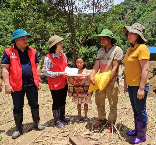 附图:越南红十字会向灾民赠送慰问品(图片来源:hanoimoi.vn) |